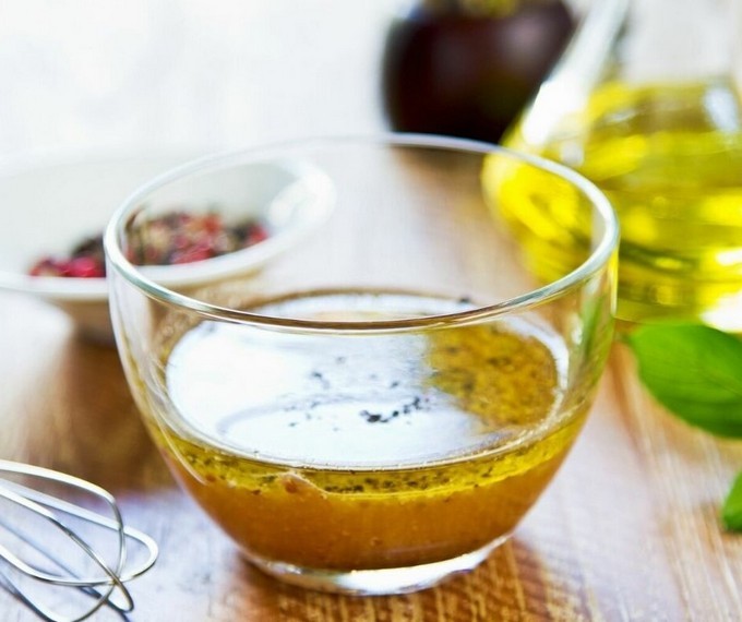 - Terwijl ons vlees in de vriezer ligt, beginnen we met het maken van de dressing voor de carpaccio. Giet wijnazijn in een diepe kom. Voeg er zout, citroensap en versgemalen peper aan toe. Meng het resulterende mengsel grondig. Daarna beginnen we geleidelijk (bij voorkeur in verschillende benaderingen) olijfolie toe te voegen, waarbij we de dressing roeren met een garde.