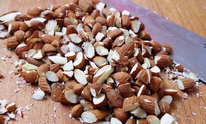 - Hak de amandelen in kleine stukjes om het gerecht te versieren. Dit doen we met een gewoon mes. Amandelen kunnen worden vervangen door andere noten naar keuze. Hazelnoten bijvoorbeeld. Snijd de zongedroogde tomaten in kleine en dunne plakjes. Parmezaanse kaas kan net zo dun geraspt of gesneden worden als tomaten.