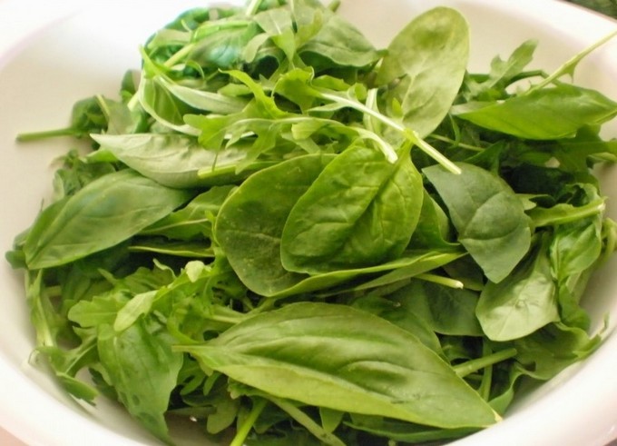 - Spoel de rucola en basilicum onder warm water. Gebruik keukenpapier om de kruiden te drogen en leg ze opzij.