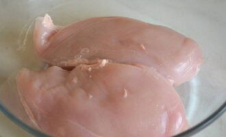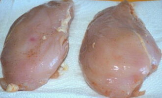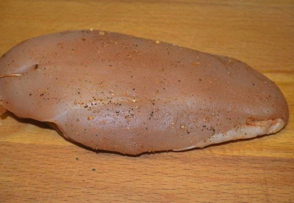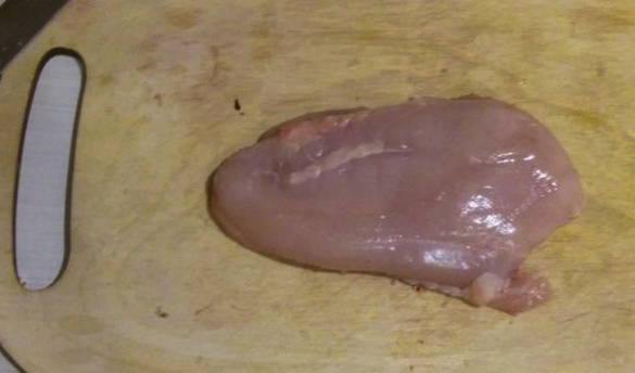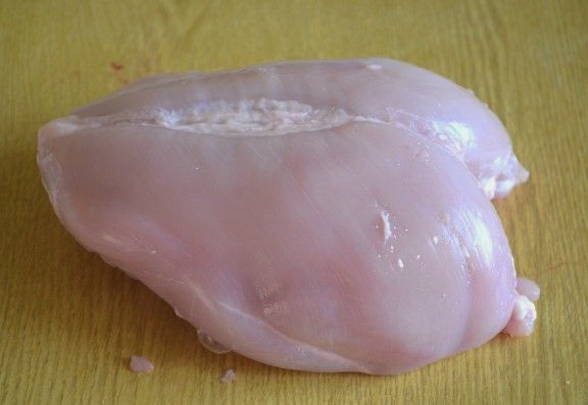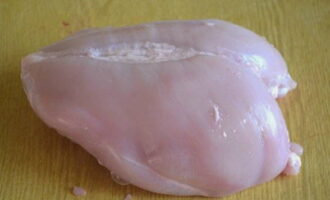 - Scheid de filet van de borst, maak hem schoon van spugen en kraakbeen.