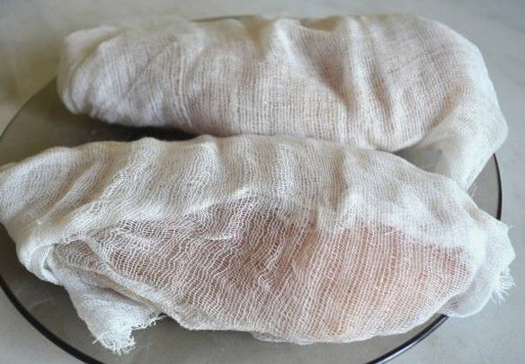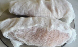 We wikkelen het in kaasdoek en leggen het een dag terug in de koelkast.