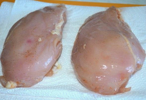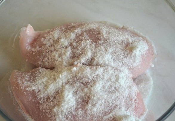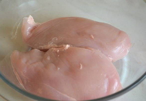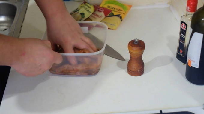 - Na een tijdje halen we de kip uit de koelkast. Het vlees moet stevig en stevig zijn.