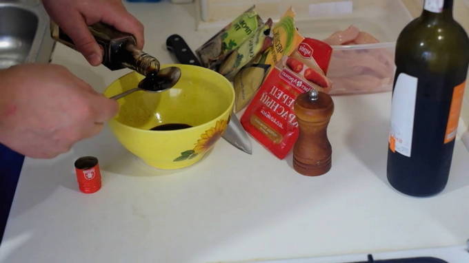 - Combineer alle ingrediënten voor de marinade en meng goed.