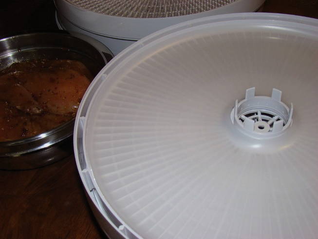 - We verspreiden het vlees op de droger en drukken er licht op.