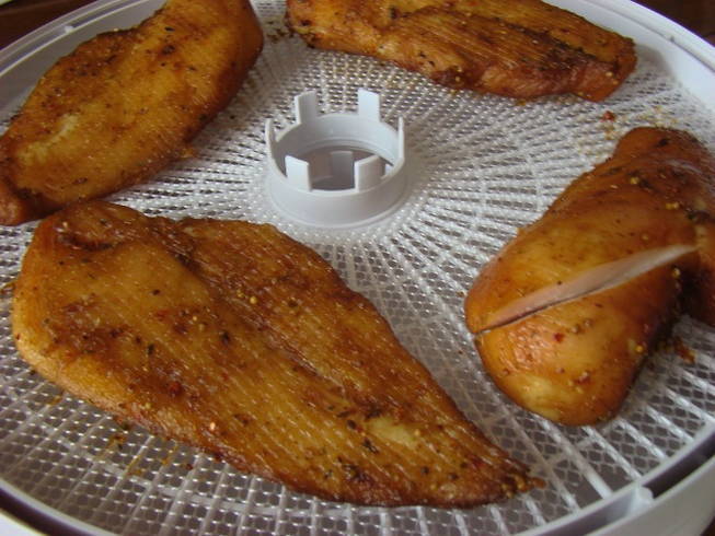- Haal de filets uit de droger en snijd ze in dunne plakjes. Eet smakelijk!