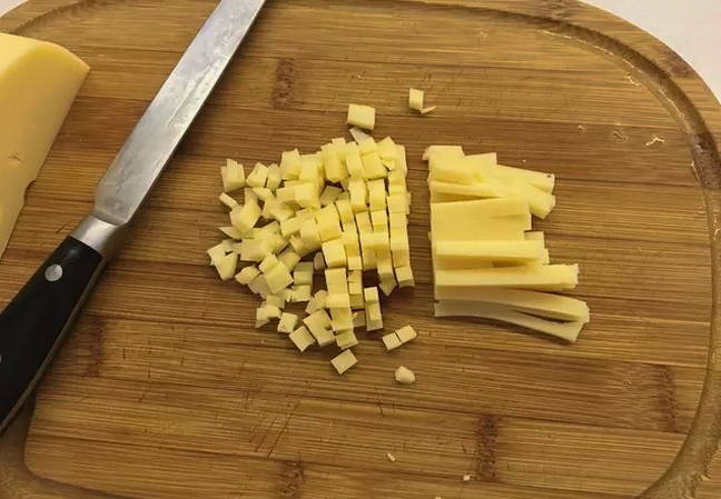 - Snijd de kaas in blokjes.