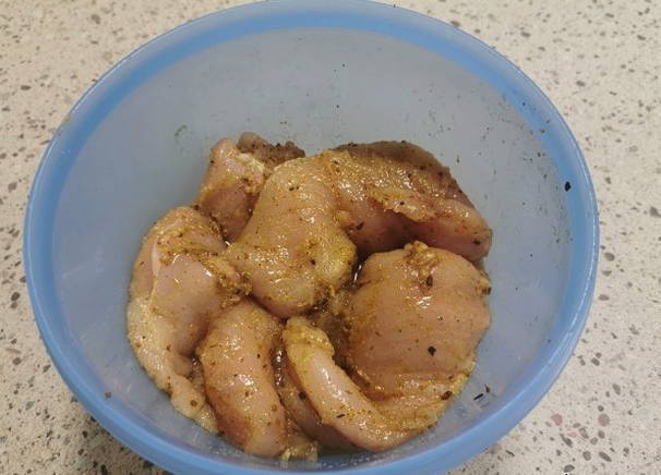 - Doe de filets in een kom en bestrooi goed met kruiden. We zetten 12 uur in de koelkast.