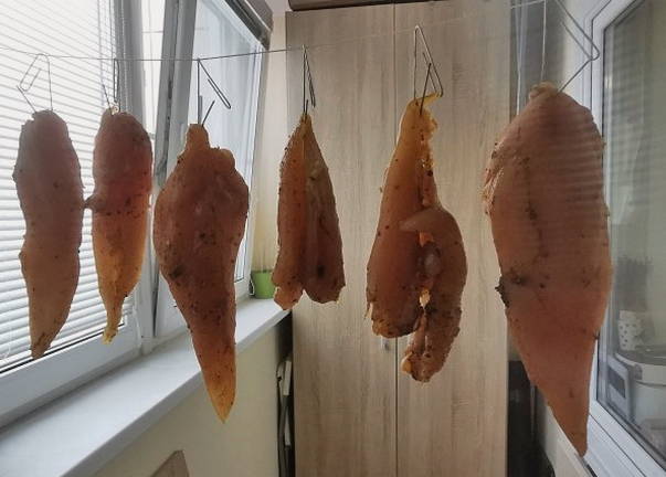 - We laten het vlees nog drie uur drogen.