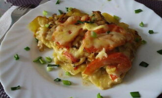- Giet rode peper, Provençaalse kruiden, knoflook, paprika en kruiden naar keuze bij het mengsel.