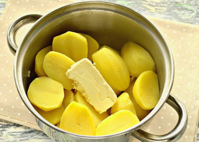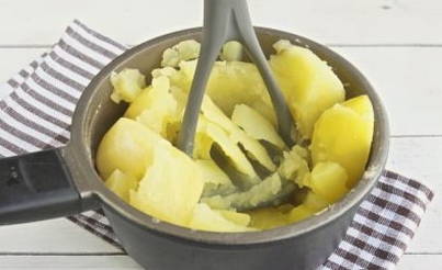 - Giet het water van de aardappelen af, droog ze en stamp ze fijn.