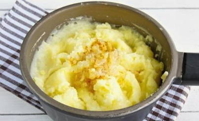 - Leg vervolgens de gebakken uien, meng goed en serveer de aardappelpuree.