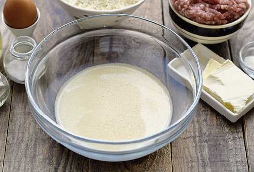 - Verwarm melk tot 35-36 graden, voeg gist en een theelepel suiker toe. Roer deze ingrediënten door elkaar en laat 15 minuten staan.