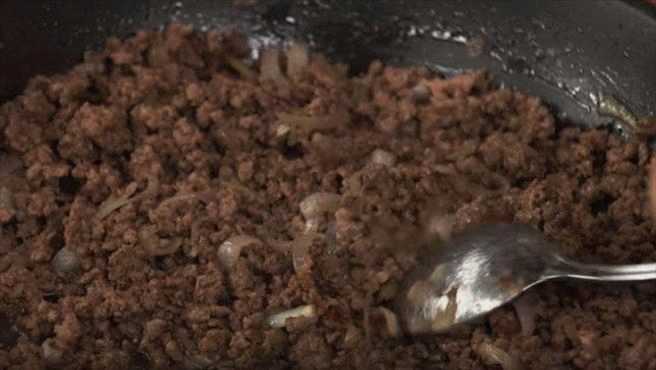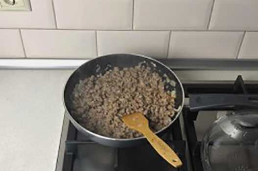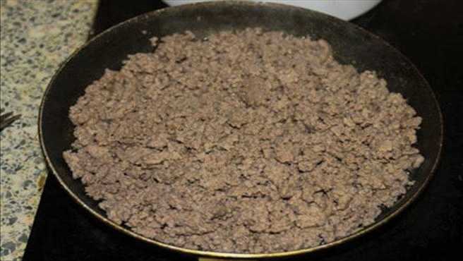 - Leg het gehakt op een hete koekenpan en bak het gaar.
