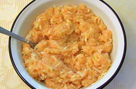 Meng het gehakt met de ui, zout, breng op smaak en roer.