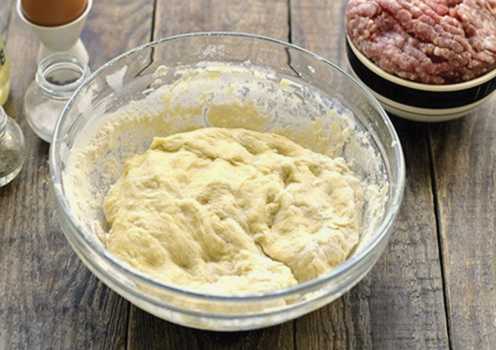 - Zeef de bloem door een zeef. Voeg bloem in porties toe aan een kom en begin met het kneden van het deeg. Wanneer het erg dik wordt, ga je verder met het kneden met de hand. Bedek het deeg vervolgens met een schone handdoek en laat het een uur op een warme plaats staan.