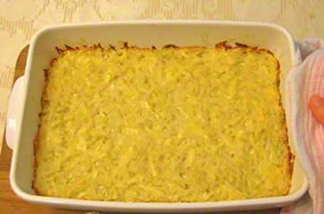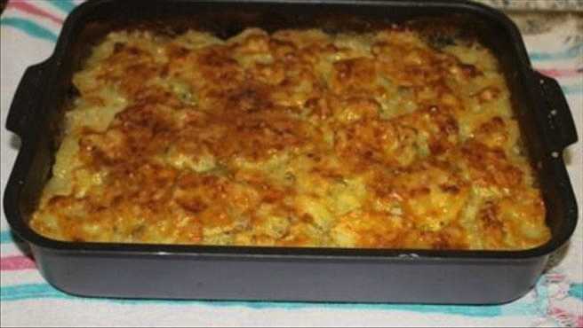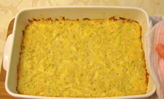 - Bedek de vorm met folie en plaats in een voorverwarmde oven op 180 graden. kook het gerecht 50-60 minuten. Verwijder vervolgens de folie en bak nog eens 15 minuten, tot ze goudbruin zijn.