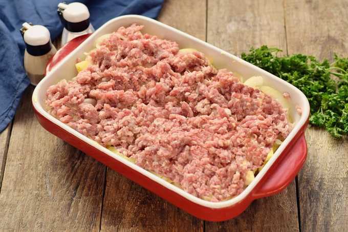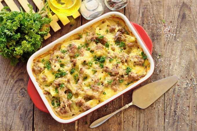 Aardappelen met gehakt in de oven zonder toevoeging van kaas