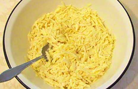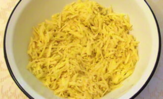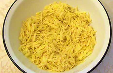 Schil de aardappelen, was ze en rasp ze op een grove rasp.