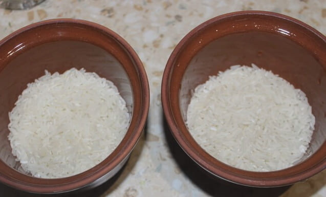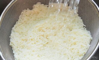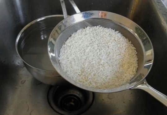 Rijst is voldoende om een paar keer in koud water af te spoelen.