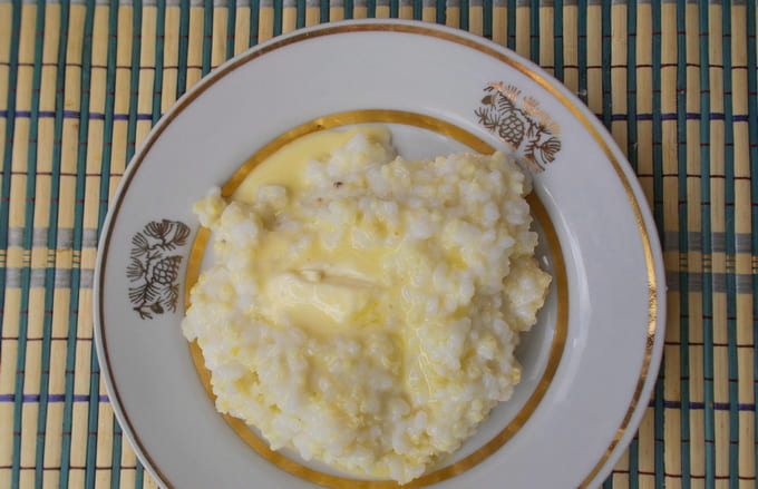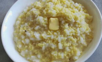 - Zet na het koken het vuur lager en kook de pap ongeveer 20 minuten. Voeg aan het einde van het koken de boter toe en roer de inhoud om.