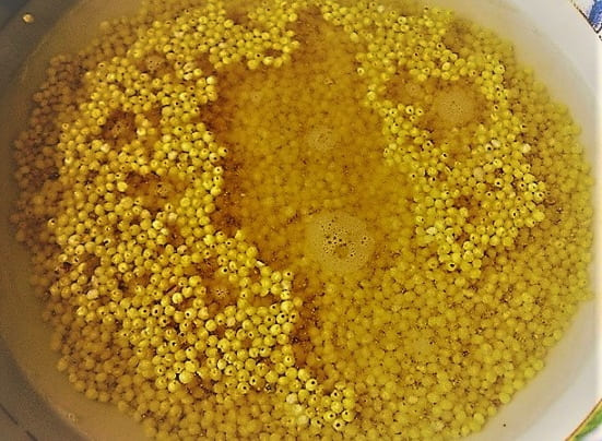 - We wassen de gierst. Indien gewenst kan het product worden geweekt in warm water voor meer zachtheid.
