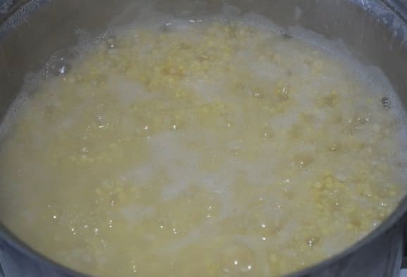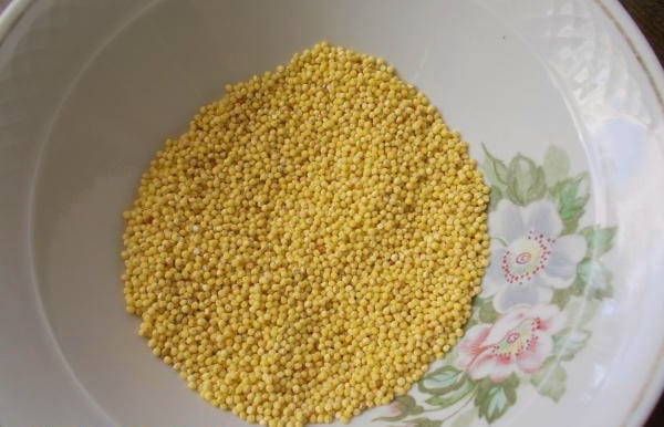 - Giet eerst kokend water over de gierst gedurende 15 minuten. Hierdoor wordt het graan zachter en zachter van smaak, en een simpele handeling versnelt het kookproces.