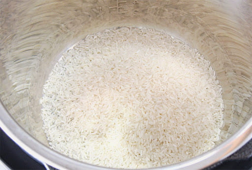 - Spoel de rijst meerdere keren onder water.