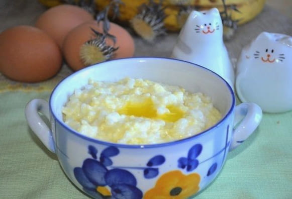 In potten gebakken pap Vriendschap met melk blijkt kruimelig en met een smakelijk goudbruin korstje. Serveer als ontbijt of lunch met groenten of kruiden.