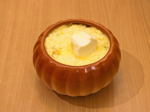 - Heldere en zoete pap Vriendschap met pompoen is klaar. Vul het gerecht met boter, roer en serveer. Eet smakelijk!