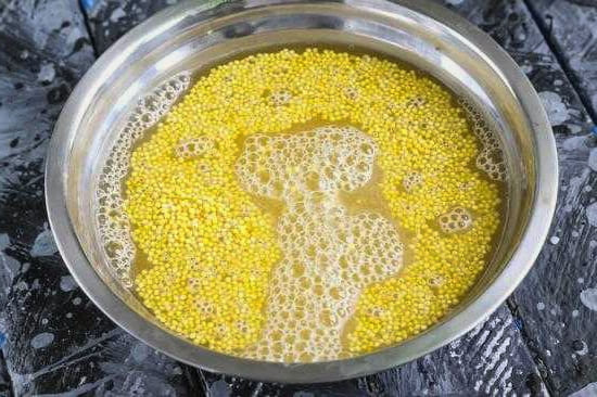 Giet gierst met een kleine hoeveelheid kokend water en laat het 10-15 minuten trekken. Dit verwijdert de bitterheid van het product en maakt het zachter.
