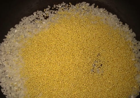 - Giet de gierst met kokend water. We vertrekken voor 15-20 minuten. Spoel de rijst naar wens.
