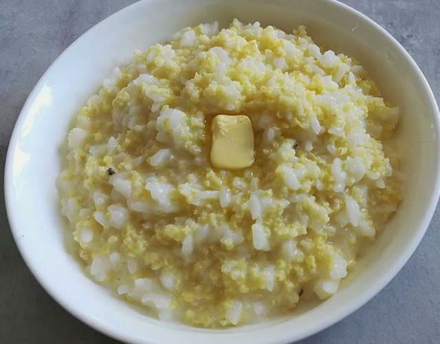 - Zet na het koken het vuur lager en kook de pap ongeveer 20 minuten. Voeg aan het einde van het koken de boter toe en roer de inhoud om.