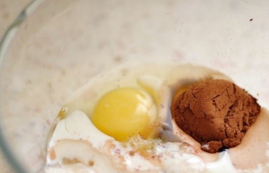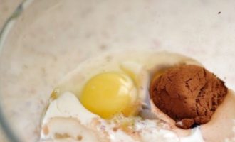 - Giet cacaopoeder en twee eetlepels havermout bij het mengsel.