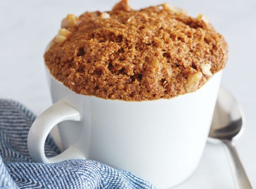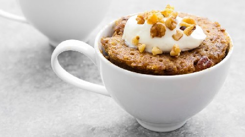 In dit recept wordt je uitgenodigd om een muffin in een mok te bakken met toevoeging van een banaan. Een banaan voegt glans en vocht toe aan zo'n dessert. Voeg kaneel en wat walnoten toe aan deze muffin. Cacao-vrij.