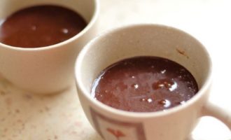 - Giet het deeg in bakmokken. Van de aangegeven ingrediënten worden 2 kopjes van elk 0,3 l verkregen.