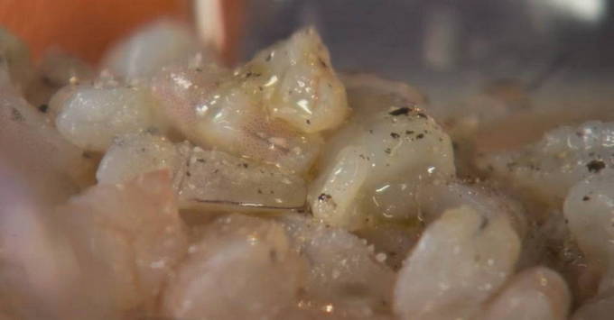 - We wassen de garnalen, schillen ze en snijden ze vervolgens in kleine stukjes.
