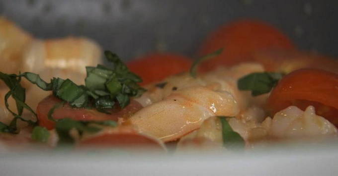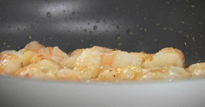 - Bak zeevruchten 1-2 minuten in olijfolie. Roer regelmatig.