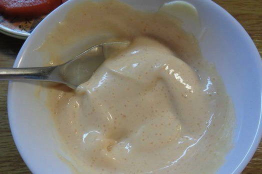 - Doe mayonaise in een klein bord en voeg er gemalen pepers aan toe. Kneed grondig.