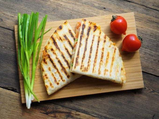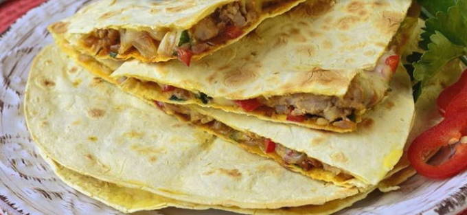 De populaire en voedzame quesadilla is een Mexicaans gerecht. Het is gebruikelijk om de traktatie te koken op een tarwe- of maïstortilla met veel kaas erin. Maar dit is een traditioneel recept, vandaag wordt het gerecht bereid met verschillende vullingen. Voeg groenten, champignons, vlees of vis toe. Probeer het zelf!