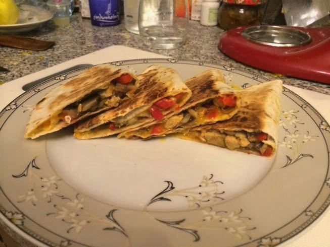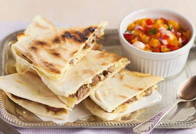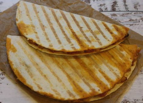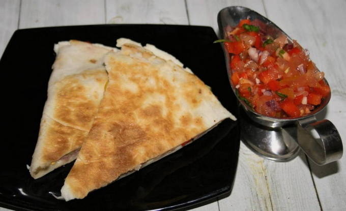 - Hete ham en kaas quesadilla is klaar. Dien en help jezelf!