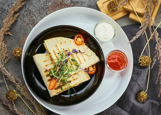 De populaire en voedzame quesadilla is een Mexicaans gerecht. Het is gebruikelijk om de traktatie te koken op een tarwe- of maïstortilla met veel kaas erin. Maar dit is een traditioneel recept, vandaag wordt het gerecht bereid met verschillende vullingen. Voeg groenten, champignons, vlees of vis toe. Probeer het zelf!
