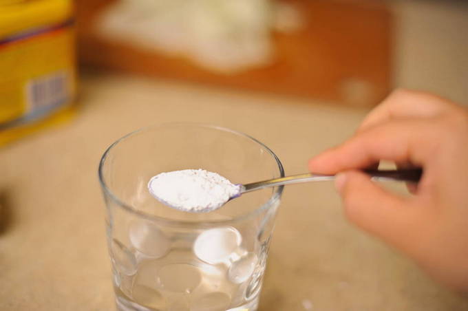 - Giet water in een aparte container. Voeg vervolgens het zetmeel toe en meng zo dat er geen klontjes ontstaan. We gaan even weg: het zetmeel zal een beetje opzwellen.