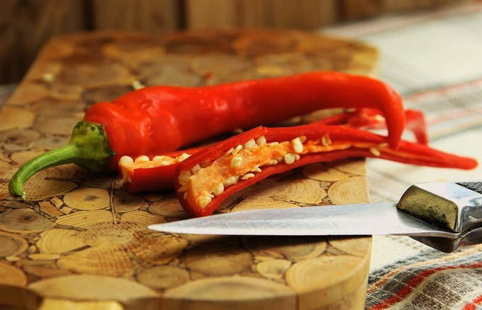 - Spoel de chilipepers en verwijder de zaadjes binnenin zodat de ketchup niet te pikant wordt. Als de scherpte je niet stoort, kunnen de zaden worden achtergelaten.