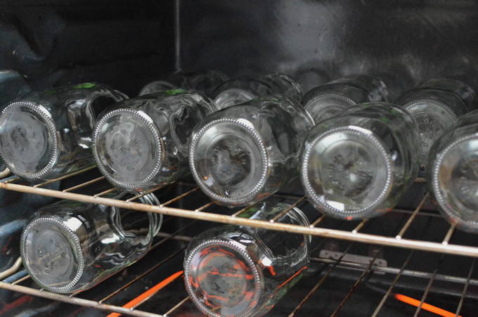 - We maken de potten schoon met zuiveringszout en een spons. We wassen ze grondig. We steriliseren op elke handige manier: in de oven, op het fornuis of in de magnetron. We wassen ook de deksels en steriliseren ze in kokend water.