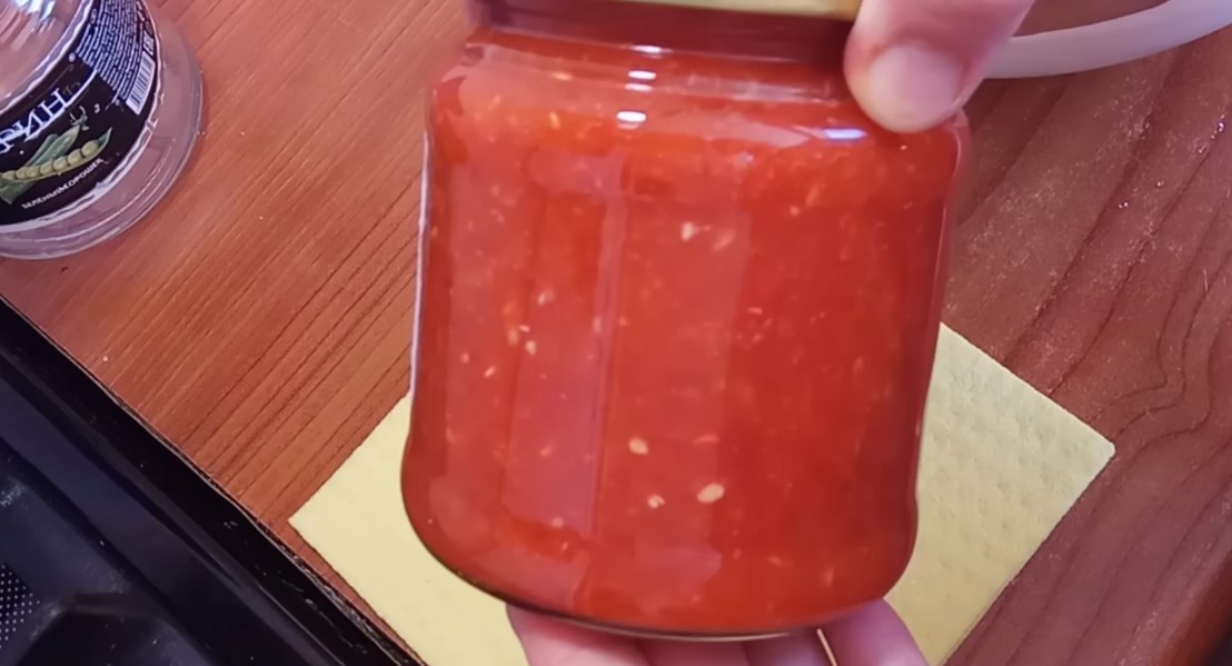 - De ideale manier om blikjes te steriliseren voor het sluiten van rauwe snacks is door middel van magnetron- of ovensterilisatie. Verse adjika moet worden verdeeld in nog hete, absoluut droge containers en worden vastgedraaid met steriele deksels.