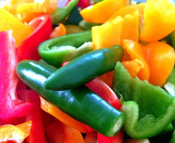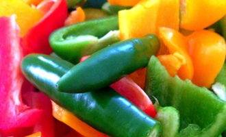 - Spoel de paprika's eerst af onder stromend water. Snijd voorzichtig het deel waar de steel zit af en verwijder de zaadjes. Snijd de paprika's in kleine stukjes. Spoel hete pepers, schil en snijd in verschillende stukken.