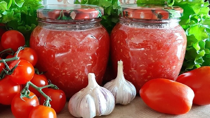 - Adjika met tomaat en knoflook zonder peper voor de winter