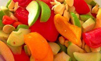 - Laten we beginnen met het koken van adjika. Het eerste wat je moet doen, is groenten doen. Was twee soorten paprika's in koud water, verwijder steeltjes en zaden en snijd ze in kleine stukjes.