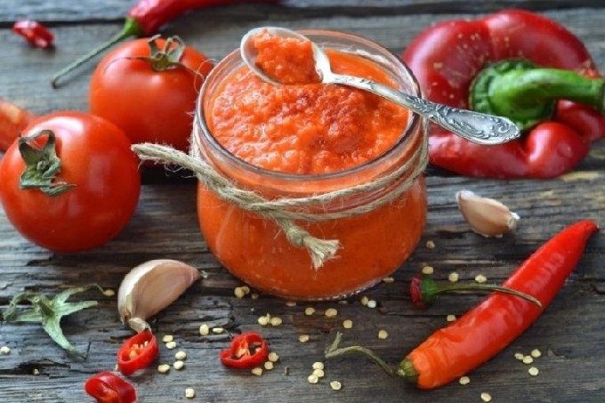 Adjika is gewild aan elke feestelijke tafel, omdat dit voorgerecht goed past bij elk vleesgerecht. Afhankelijk van je voorkeur kun je het meer of minder pittig maken.