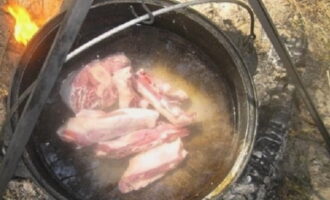- Varkensshurpa in een ketel op een vuur - een klassiek recept